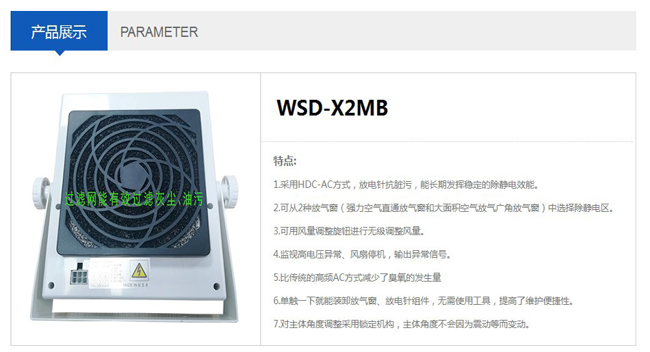 性能 | 防塵 | 用途 | 除靜電 | 離子風(fēng)量 | 1.4-3.2(cfm) |